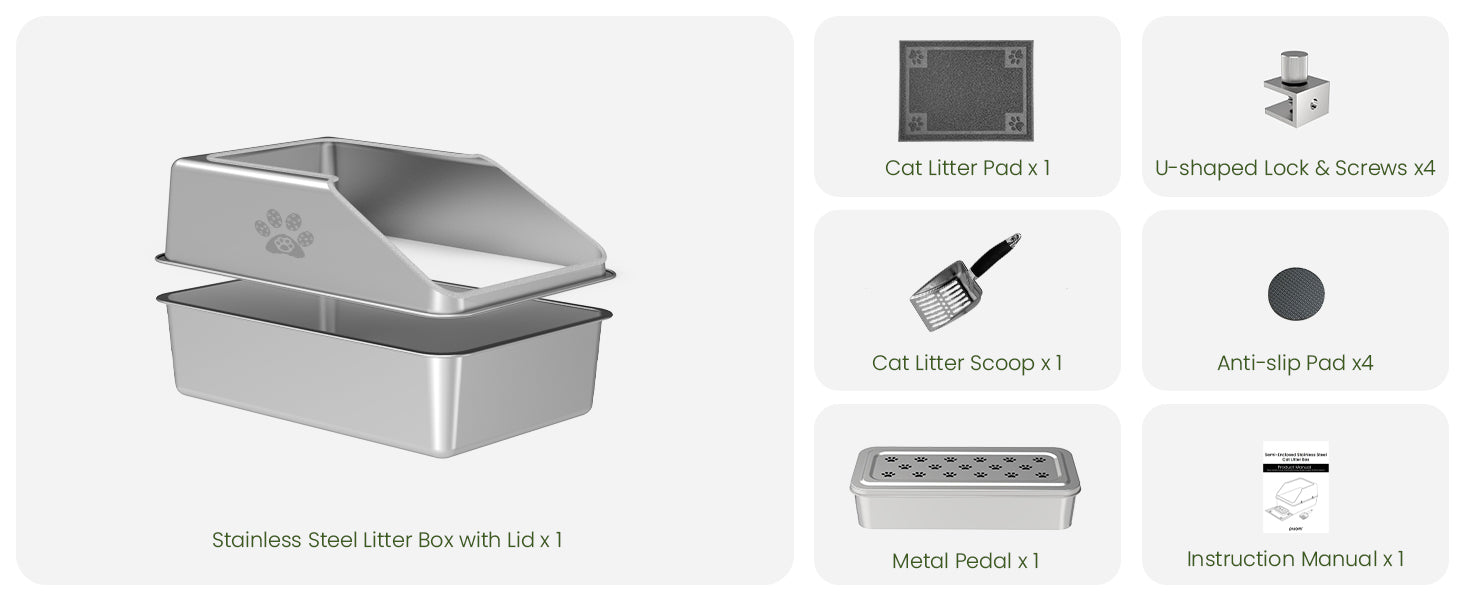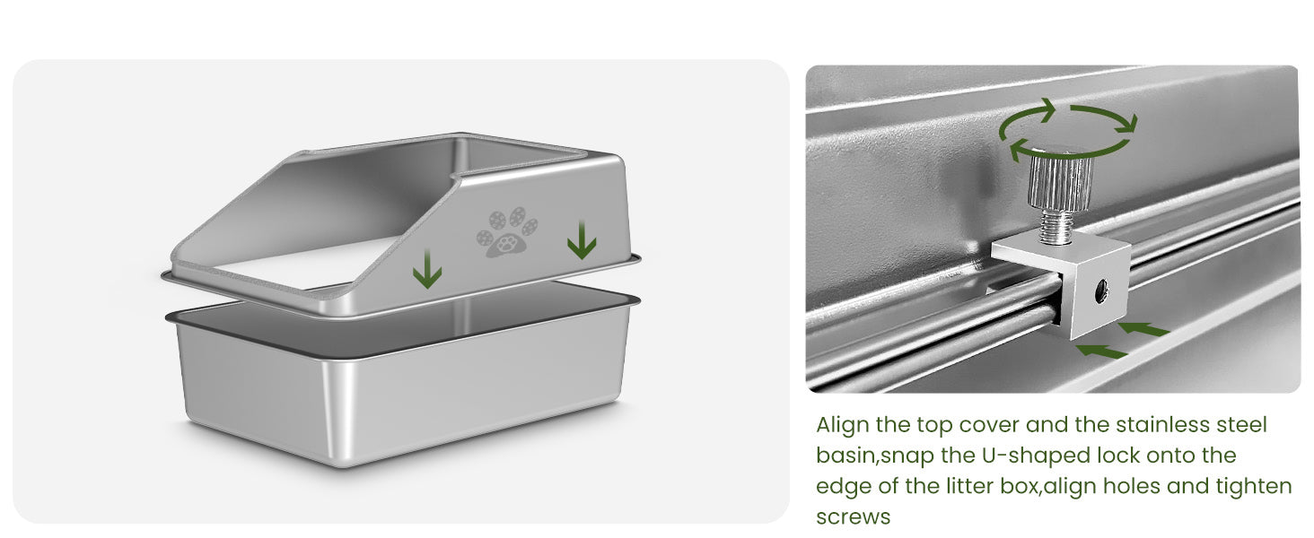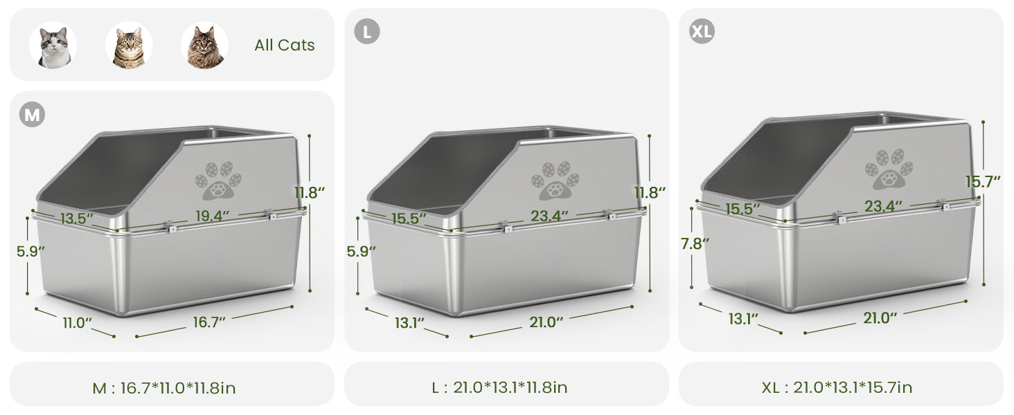 - Durable & Sturdy: Crafted from high-quality stainless steel, this litter box is built to last. It's resistant to rust and scratches, ensuring long-term use.