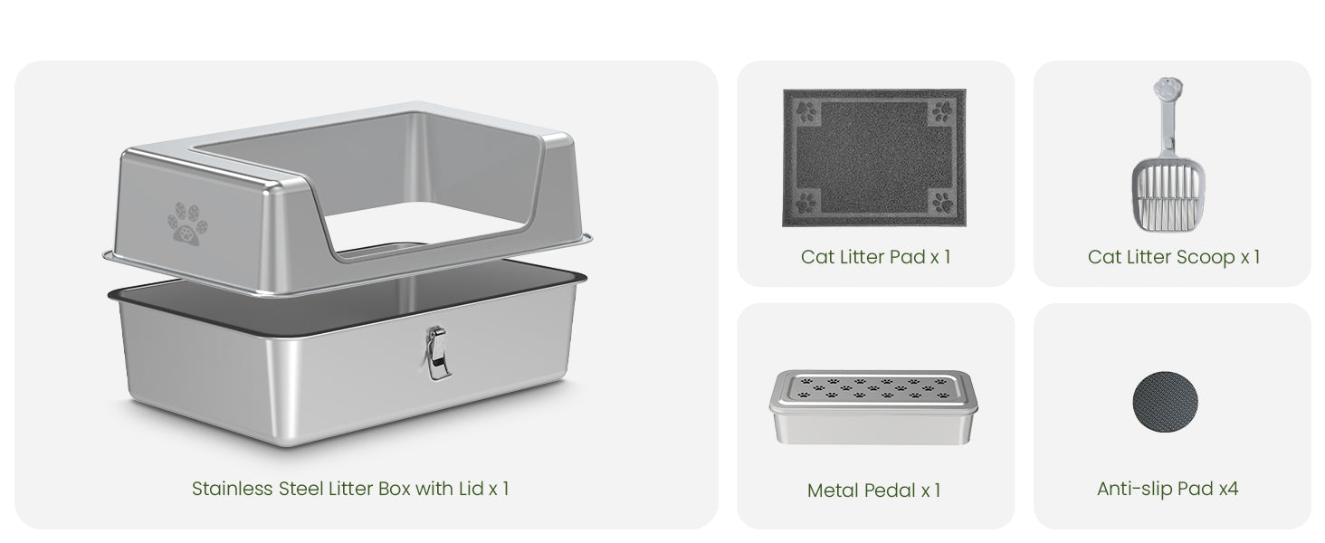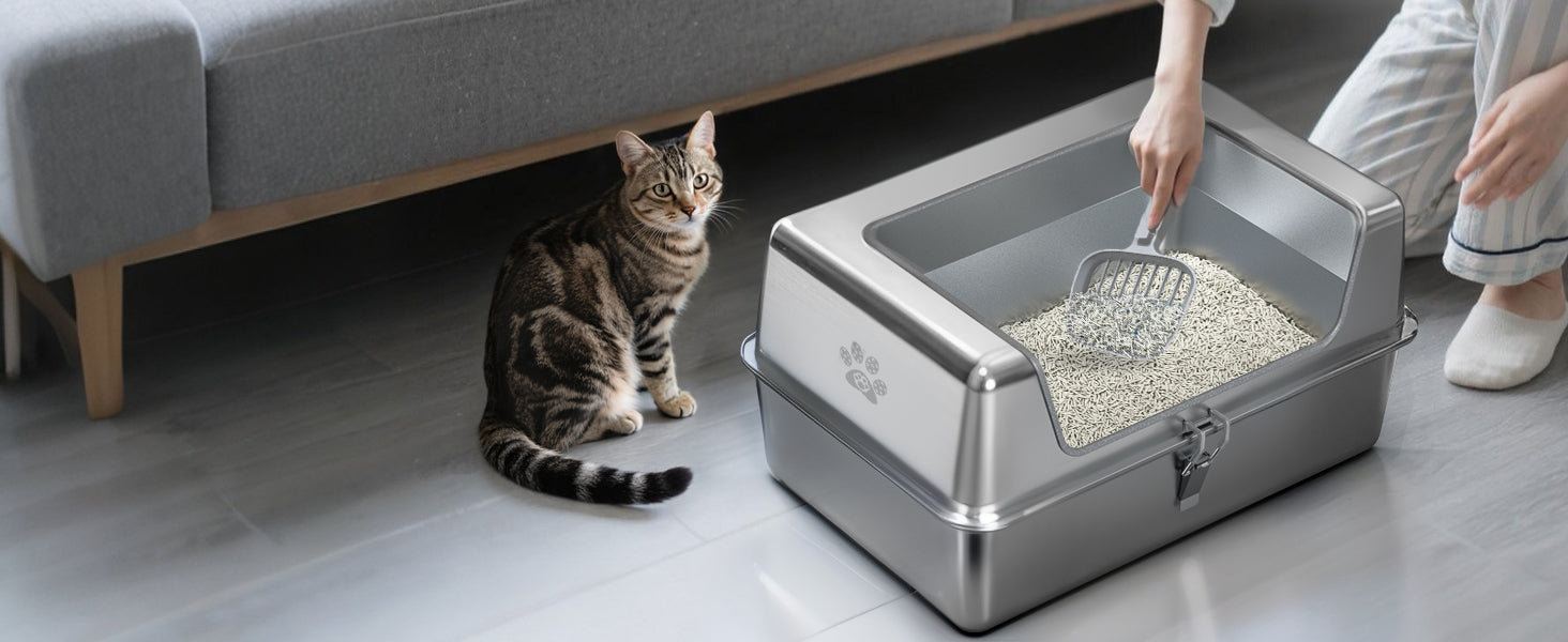 - Durable & Sturdy: Crafted from high-quality stainless steel, this litter box is built to last. It's resistant to rust and scratches, ensuring long-term use.