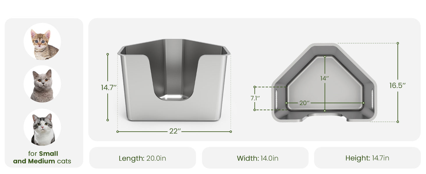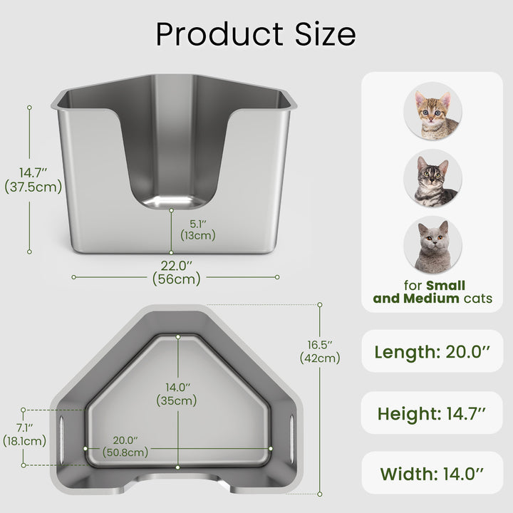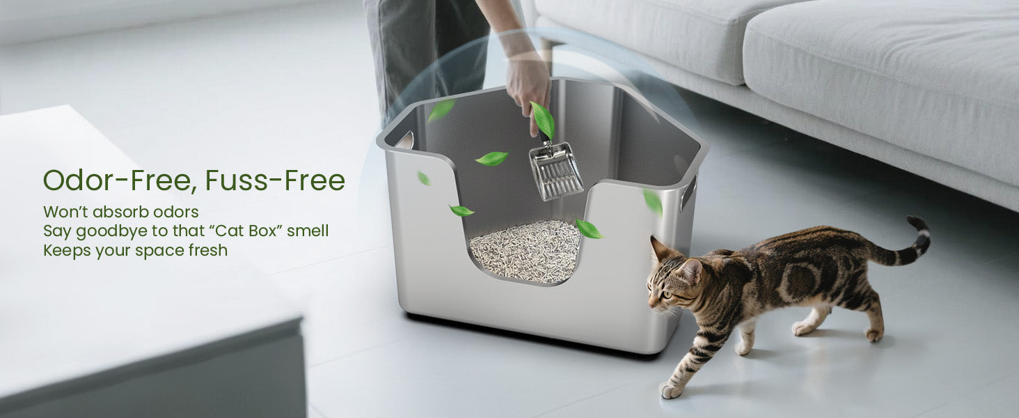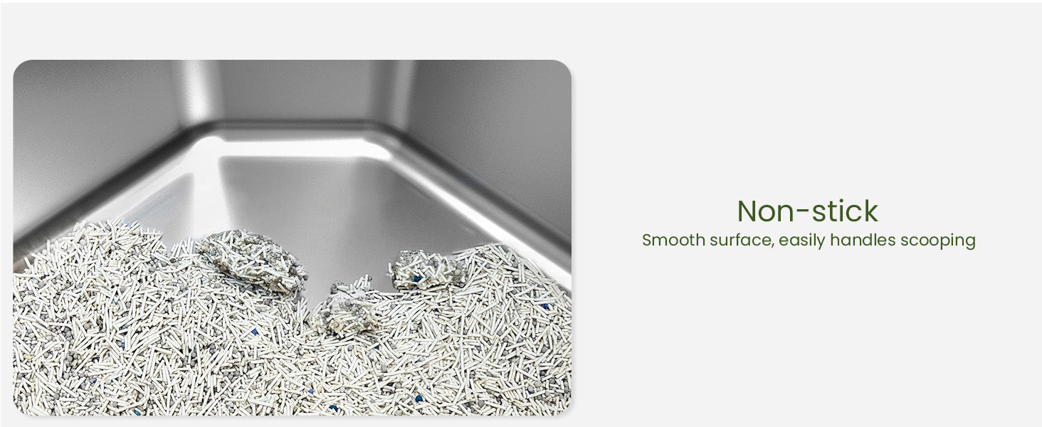- Stainless Steel Material & No Odor: --The litter pan durable, non-stick, and not easy to damage, rust-proof stainless steel ensures long-lasting use without absorbing odors, unlike plastic alternatives.