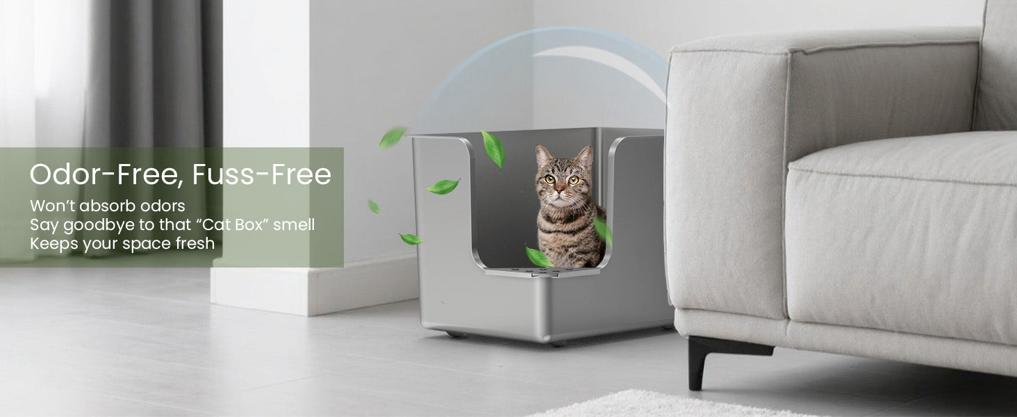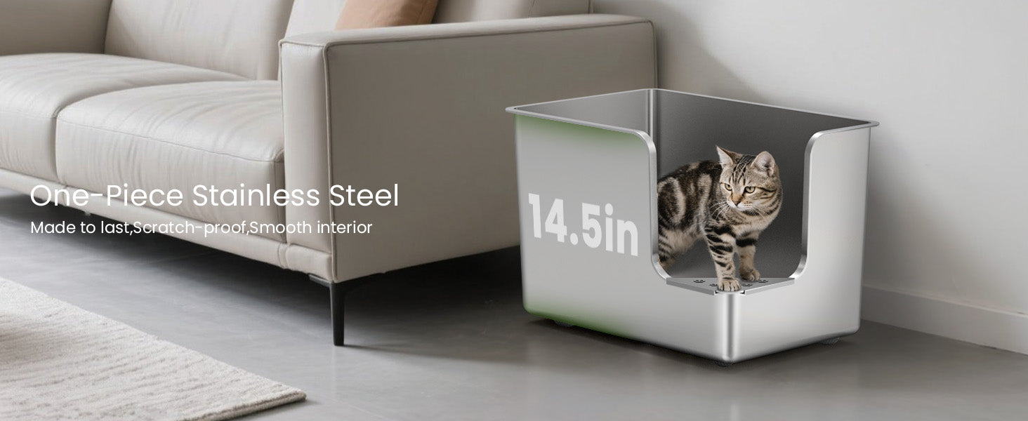 Durable & Odor-Free: Crafted from full stainless steel, this litter box is rust-resistant, non-stick, and won't absorb odors like plastic, ensuring a fresh and clean environment.