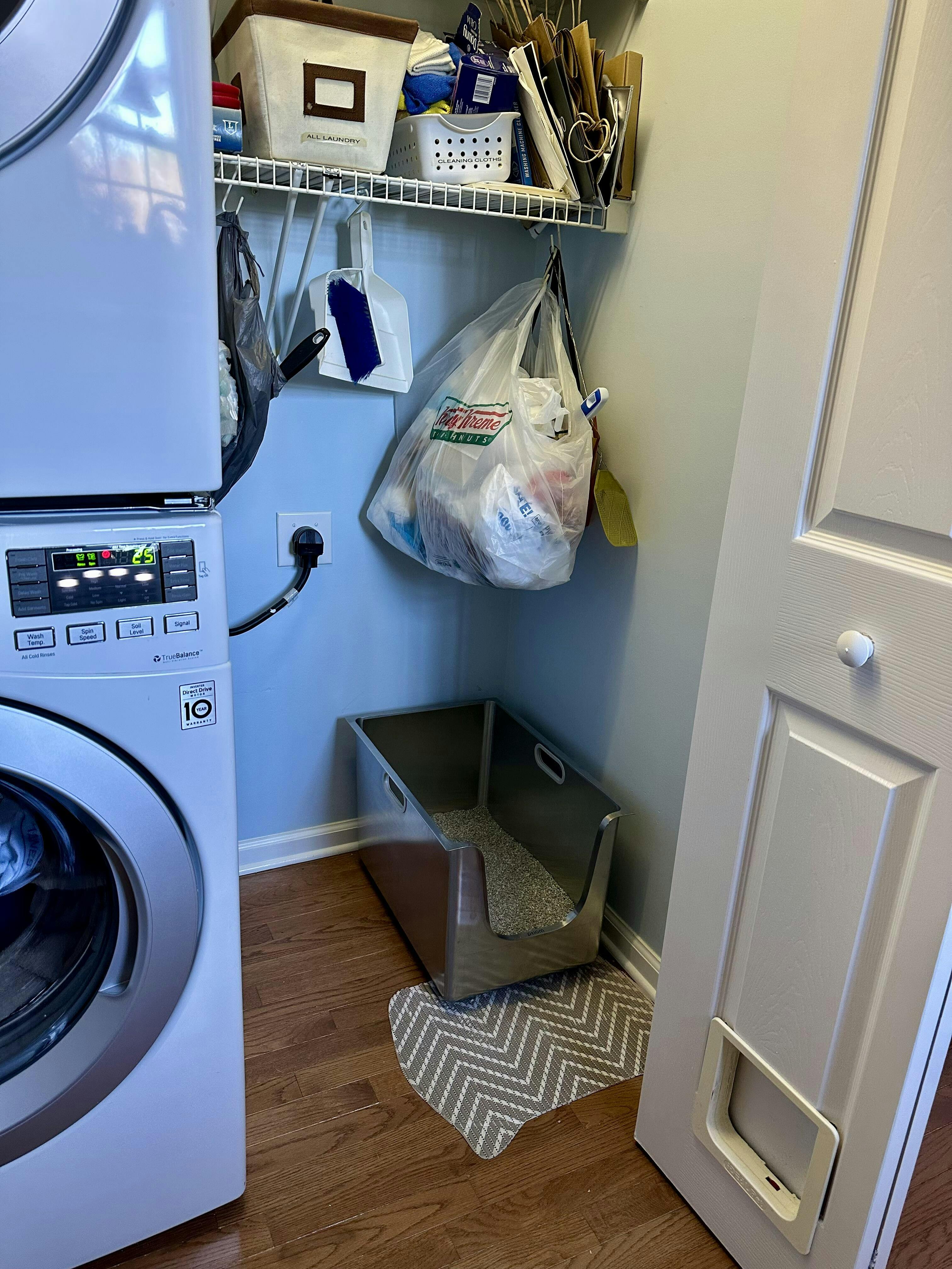 This is the best litter box I’ve ever owned. Easy to clean. No smells. I have it in my laundry closet so I clean it frequently, but now it’s easy, not a hassle and it looks so much better. My big boys have no problem walking in and out of it.