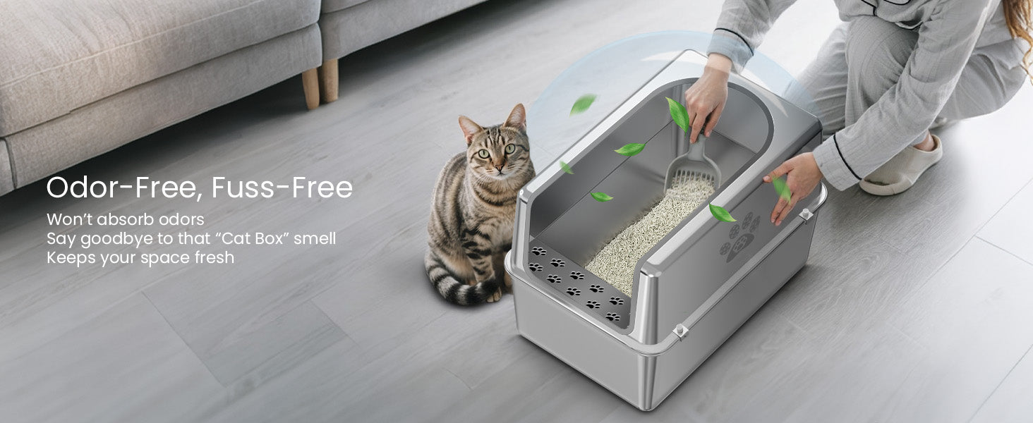 This extra-large stainless steel litter box offers ample space for even the biggest felines, making it perfect for multi-cat households. Its sleek design adds a touch of modern elegance to any room.