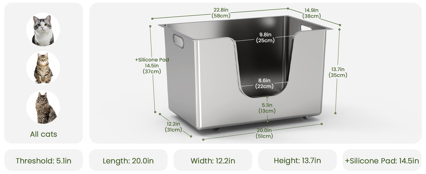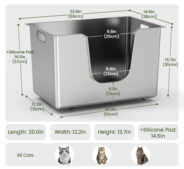 High Edges: The 13.8-inch-high edges prevent litter from spilling, keeping your space clean. Suitable for cats and rabbits of all sizes.