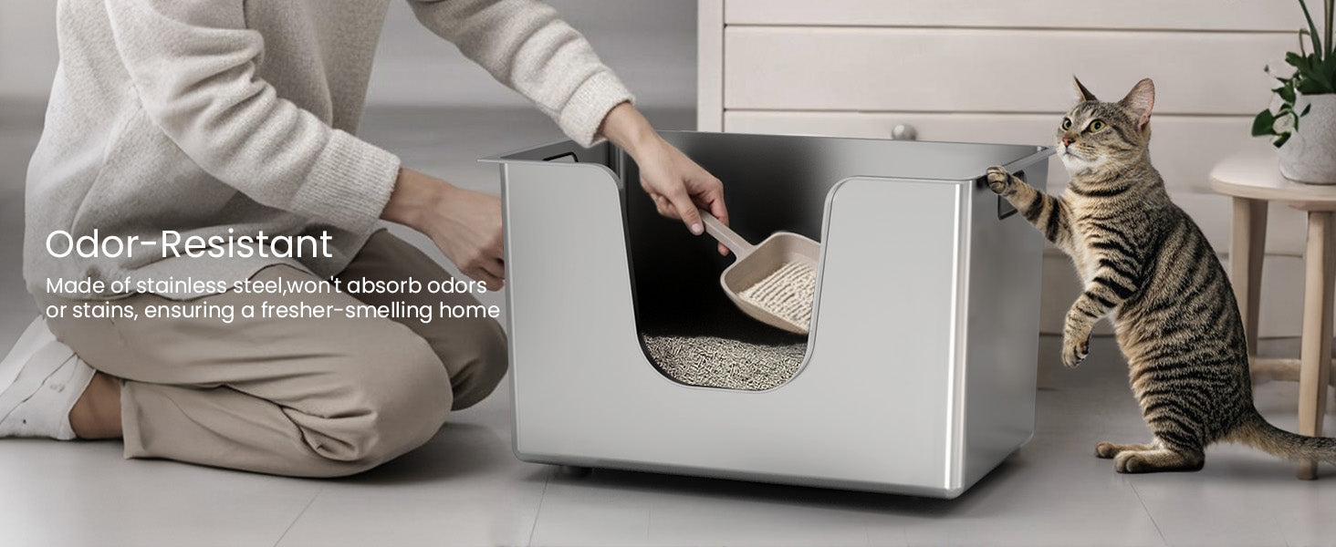- One-Piece Stainless Steel cat litter box