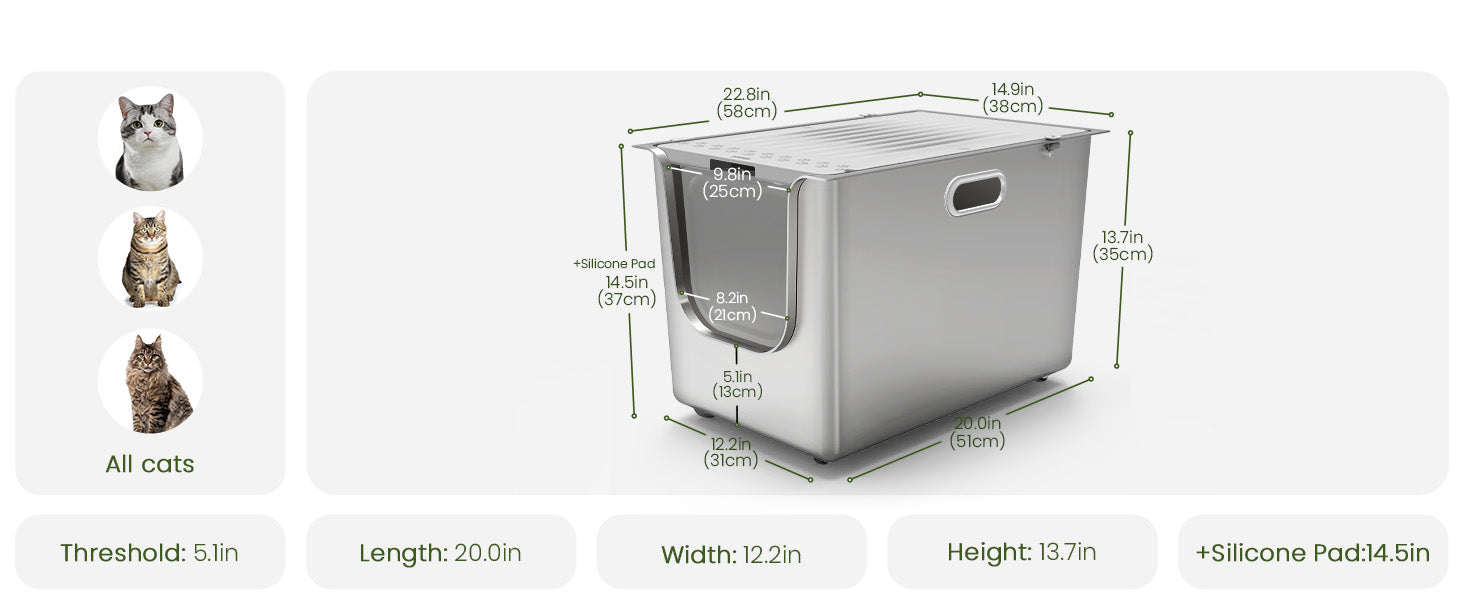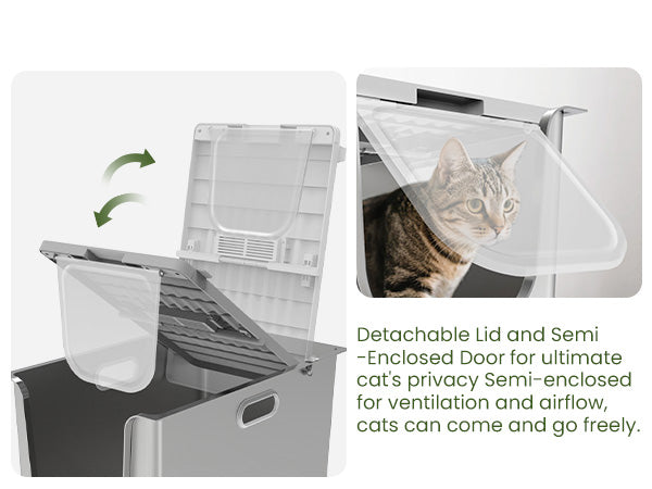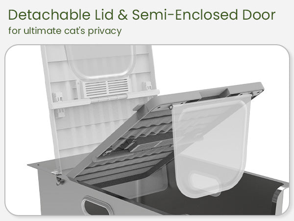 Semi-Enclosed Detachable Lid: Perfectly balances odor control and privacy for your cat while maintaining excellent ventilation.