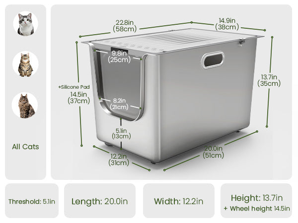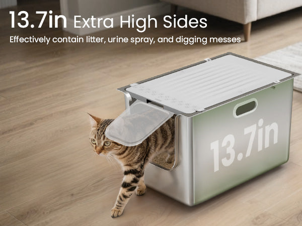 13.7" Extra-High Sides & Seamless Leak-Proof Design: Stops high-spraying and litter scatter completely, eliminating floor cleanup.
