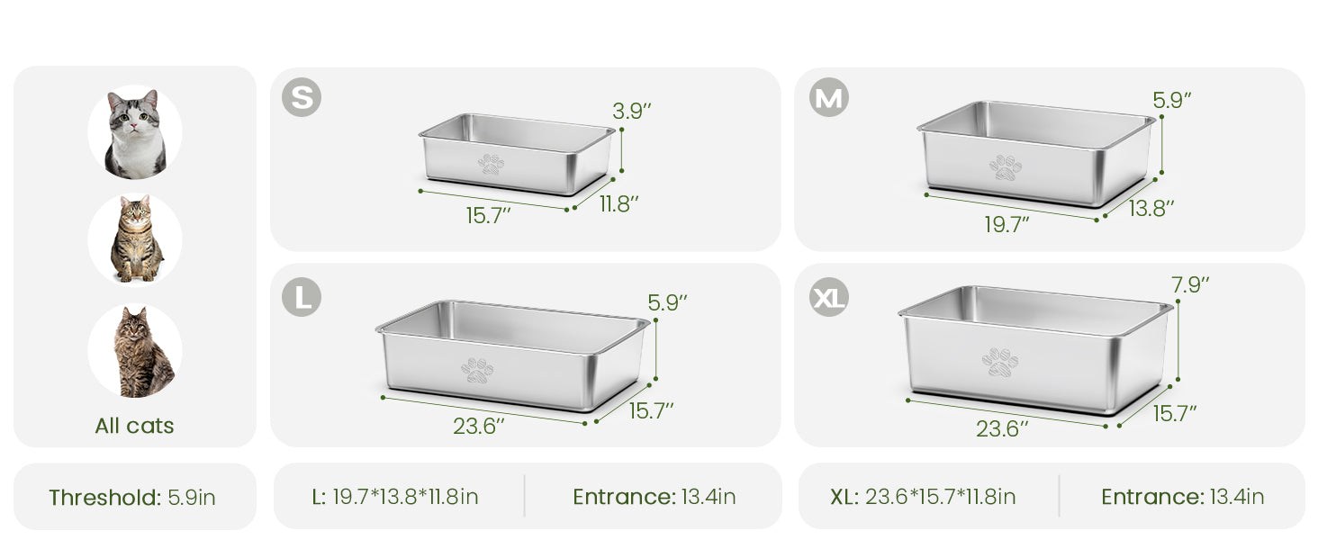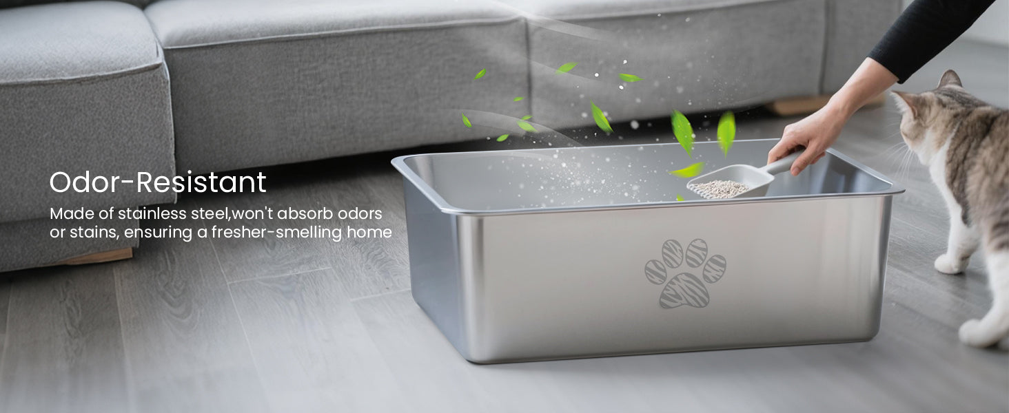 - Stainless steel material—the cat litter pan is very strong, won't rust, won't be scratched, won't leave scratches, is easy to clean, and has a long service life.