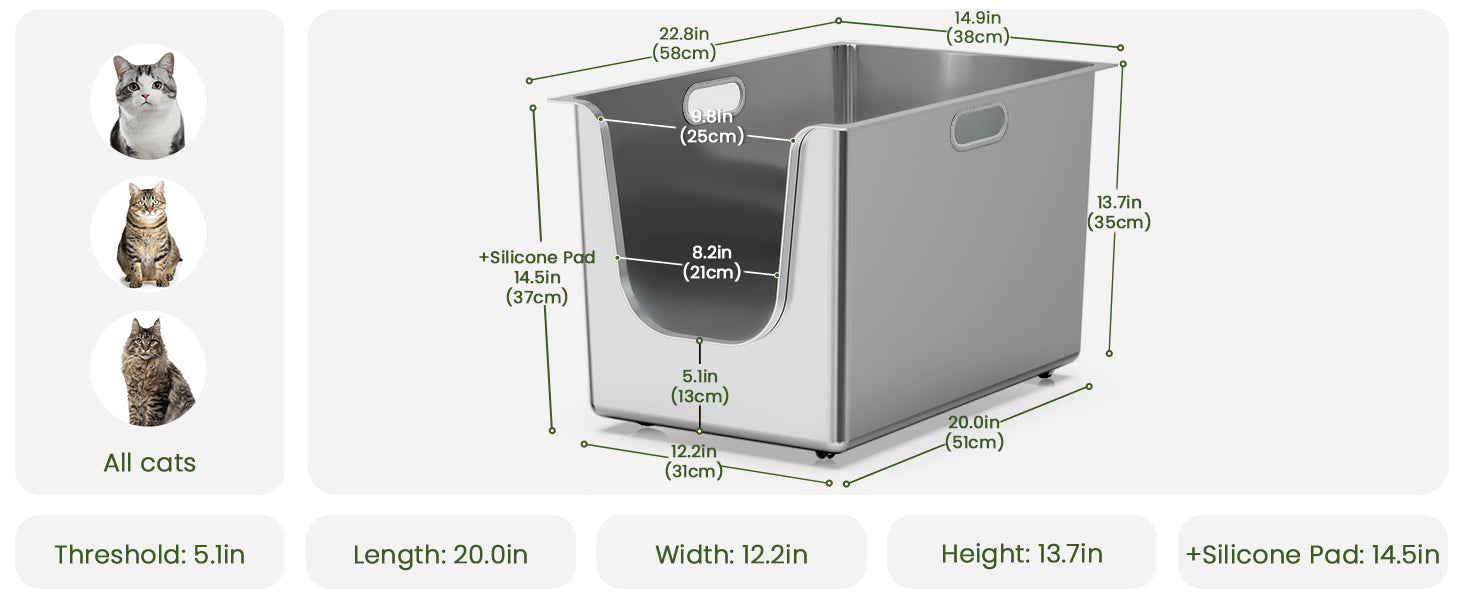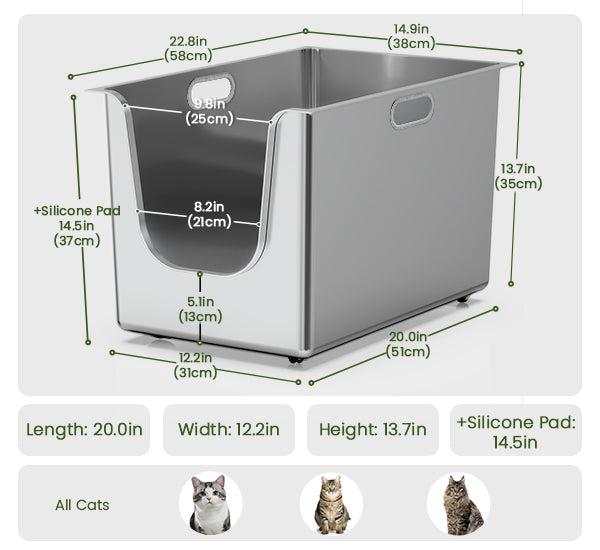 High Edges: The 13.8-inch-high edges prevent litter from spilling, keeping your space clean. Suitable for cats and rabbits of all sizes.