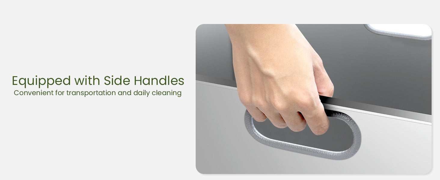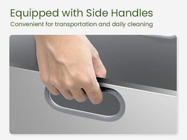 Ergonomic Design: Hollow handles on both sides for easy lifting, with wheels and pads for stability and portability.